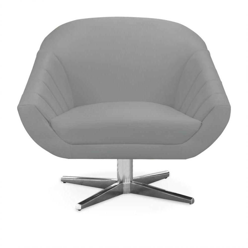 Poltrona Giratória Giovana Suede Cinza Base Cromada - D'rossi
