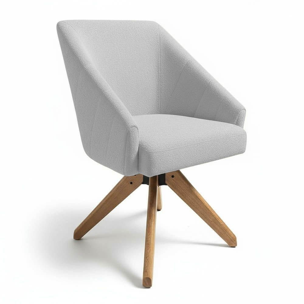 Poltrona Giratória Alana Bouclê Cinza Base De Madeira - Pallazio