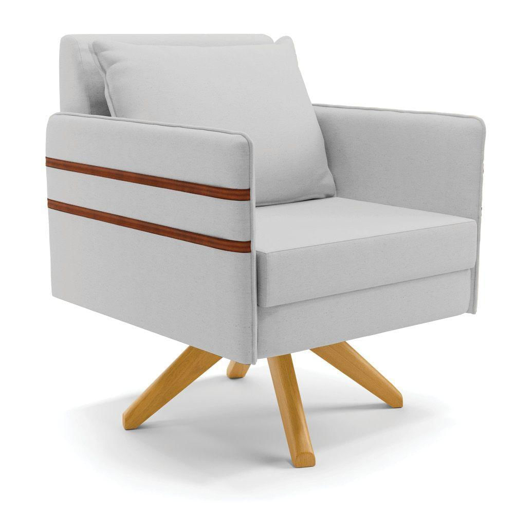 Poltrona Giratória Linho Base De Madeira Ma30 A05 Cinza