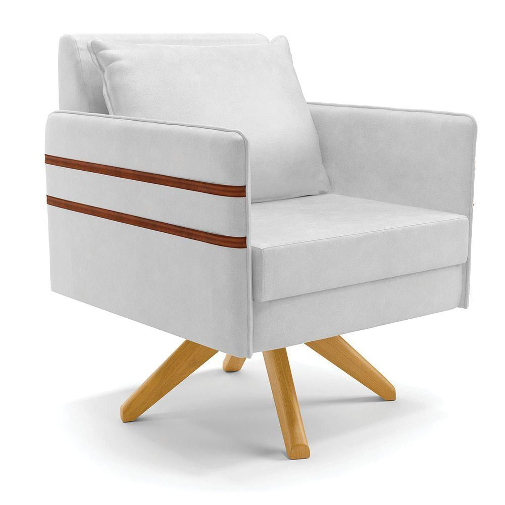 Poltrona Giratória Mari Corano Branco Base De Madeira Ma30