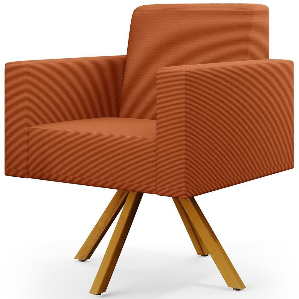 Poltrona Giratória Sala De Estar Base De Madeira Helô L02 Tecido Terracota