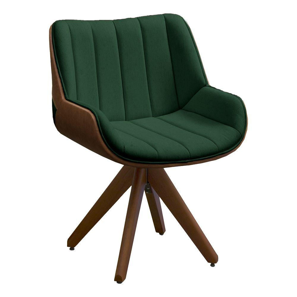 Poltrona Giratória Alabama Veludo Verde Militar Base De Madeira - D'rossi