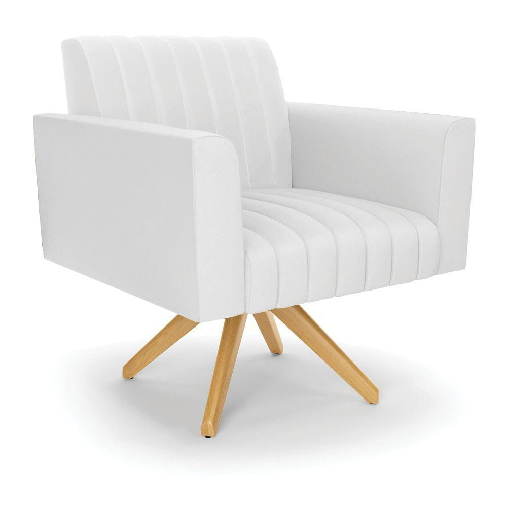 Poltrona Giratória Viena Gomada Corino Branco Base De Madeira Ma30 - D'rossi