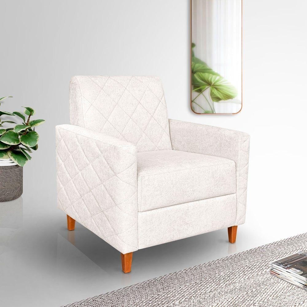 Poltrona Liana Bouclê Pés De Madeira - Pallazio Cor Off White