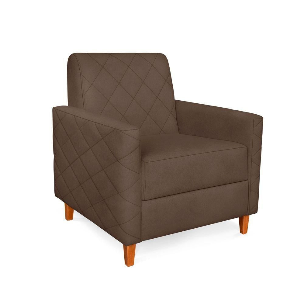 Poltrona Liana Veludo Marrom Pés De Madeira - Pallazio