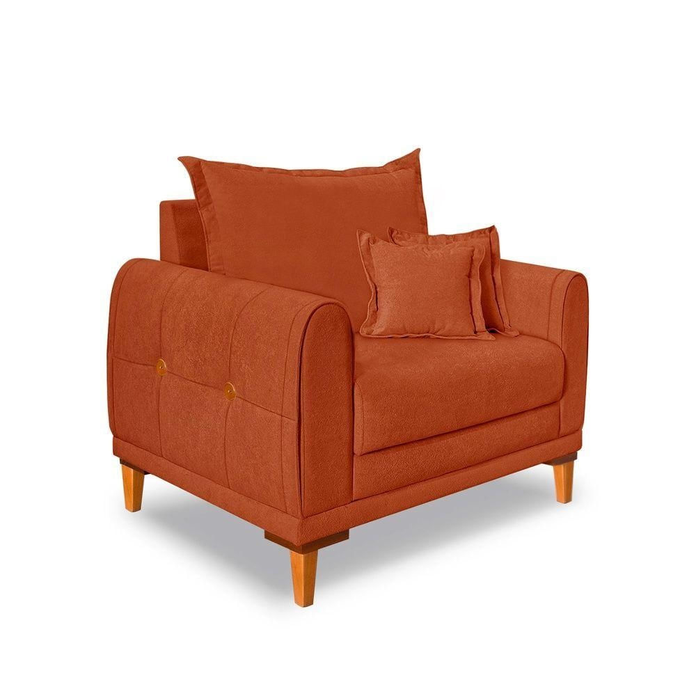 Poltrona Livia Bouclê Terracota Pés De Madeira - Pallazio