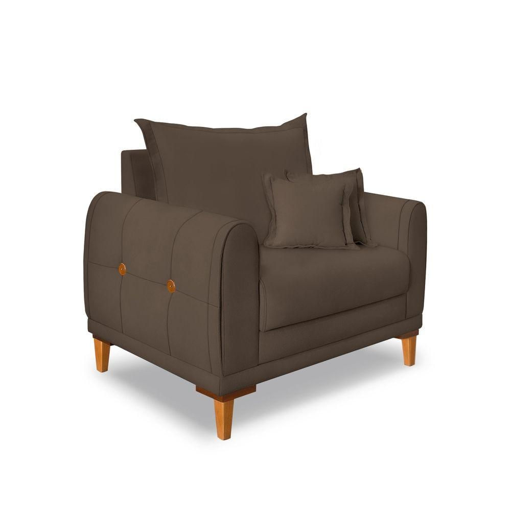 Poltrona Livia Veludo Pés De Madeira - Pallazio Cor Marrom