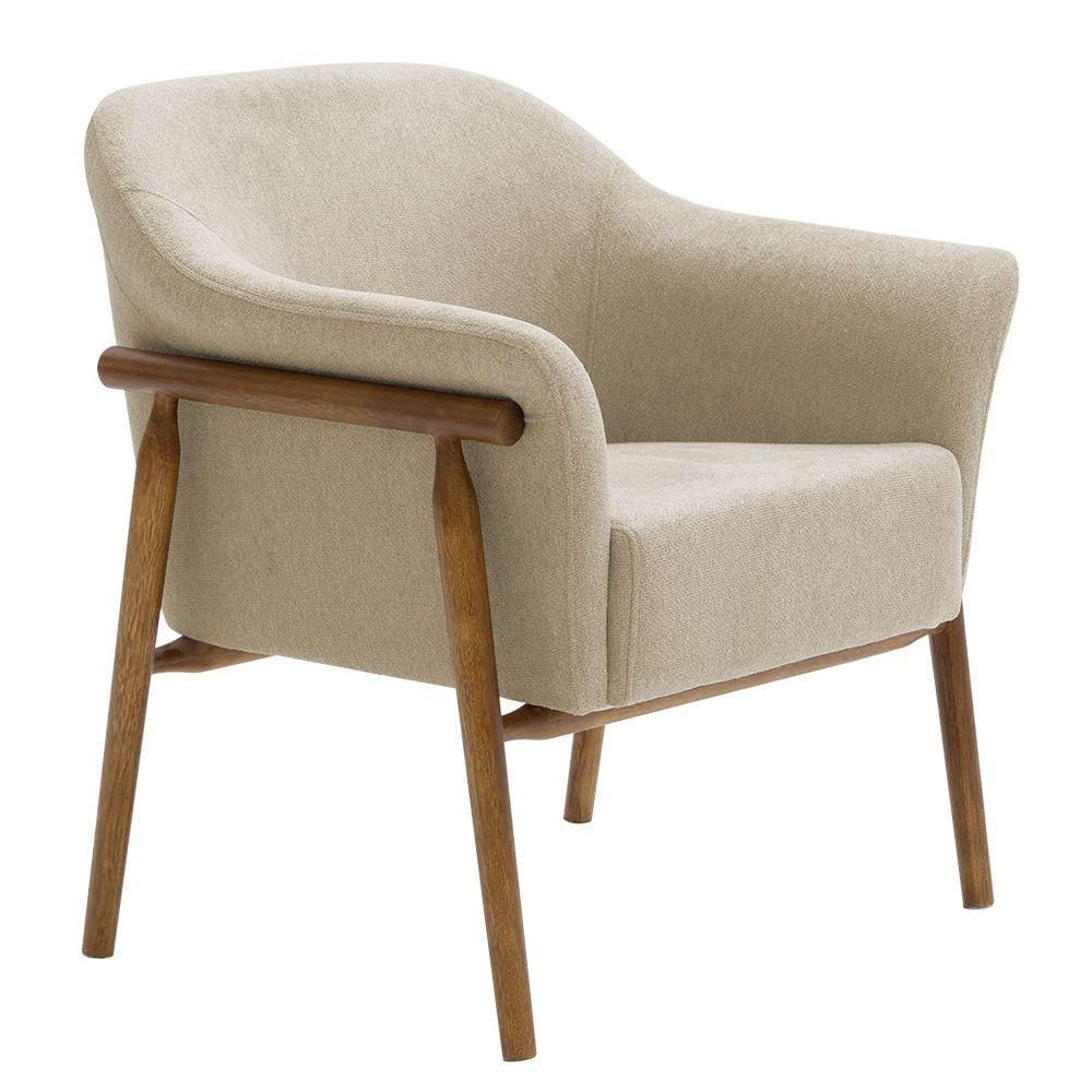 Poltrona Luna Base Madeira Castanho Poliéster Bouclé Bege - Nexta Casa