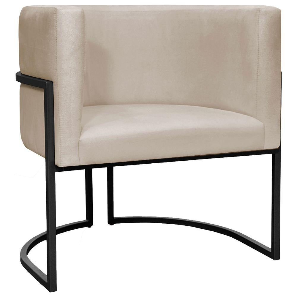 Poltrona Luna Suede Cores Base De Ferro Preta - Bege, Suede