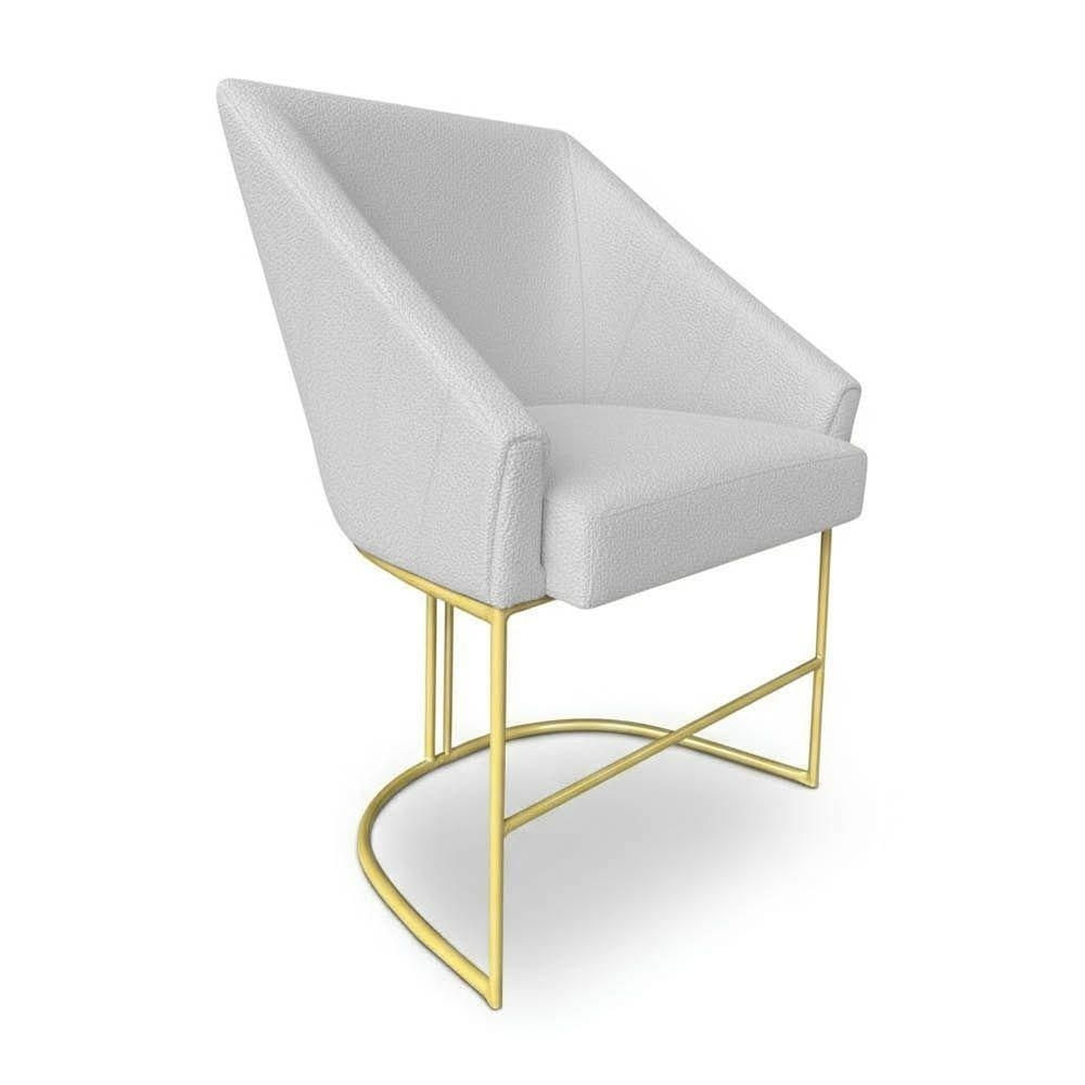 Poltrona Luxo Alana Bouclê Base Ferro Dourado - Pallazio Cor Cinza
