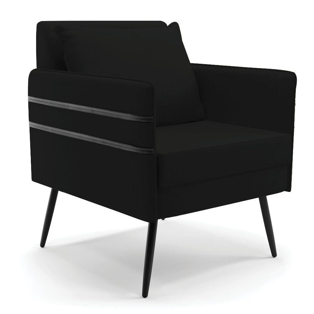 Poltrona Mari Linho Preto A79 Pés Palito De Ferro Preto