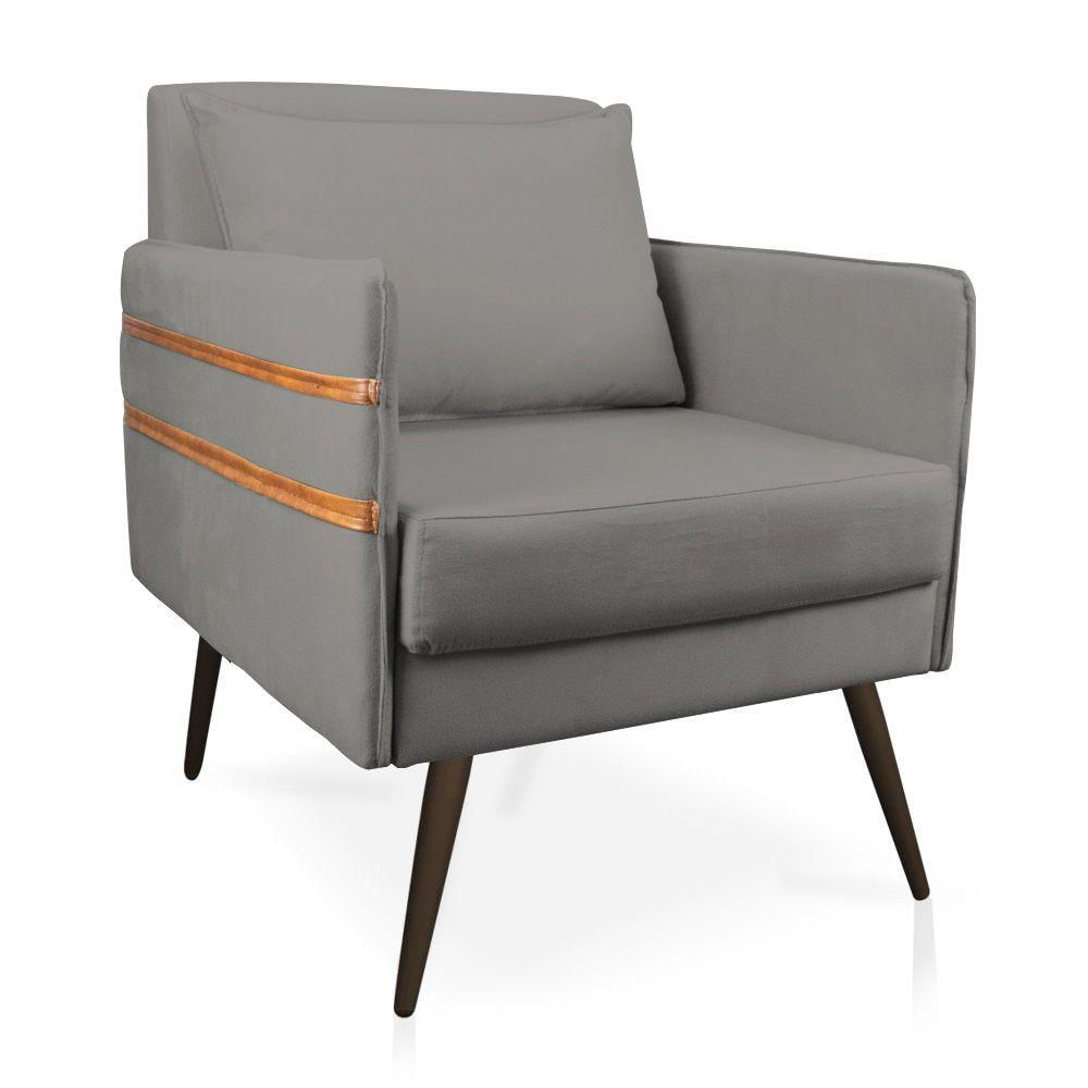 Poltrona Mari Suede Grafite Pés Palito De Ferro Marrom - D'rossi