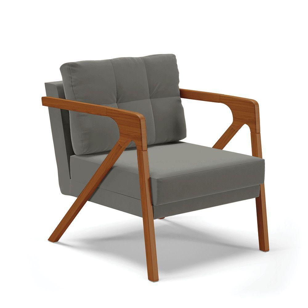 Poltrona Melissa Suede Base De Madeira Castanho - D'rossi Cor Grafite