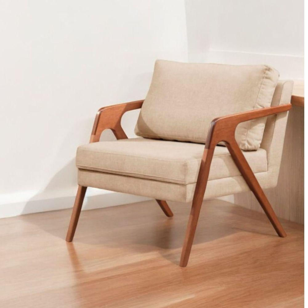 Poltrona Mona Linho Bege Sofisticado Sala Pé Madeira Maciça