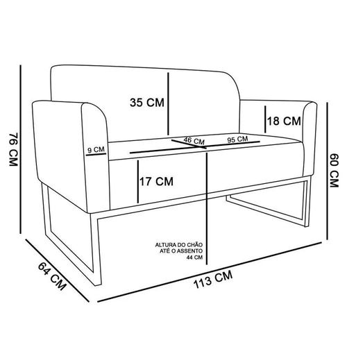 Material da Espuma: Espuma D-28 no assento e encosto e D-23 nos braços.