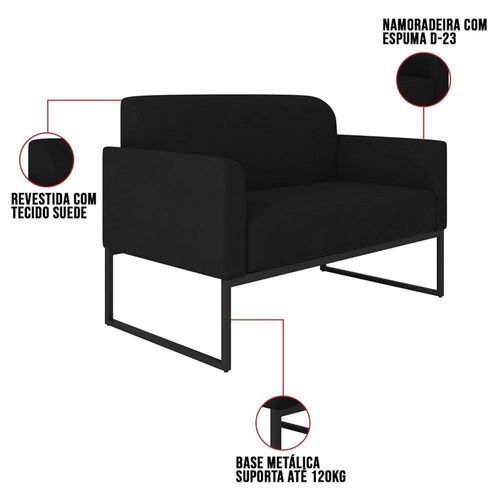 Poltrona Namoradeira 2 Lugares Base Industrial Preta Maressa S07 Suede Preto - Ibiza