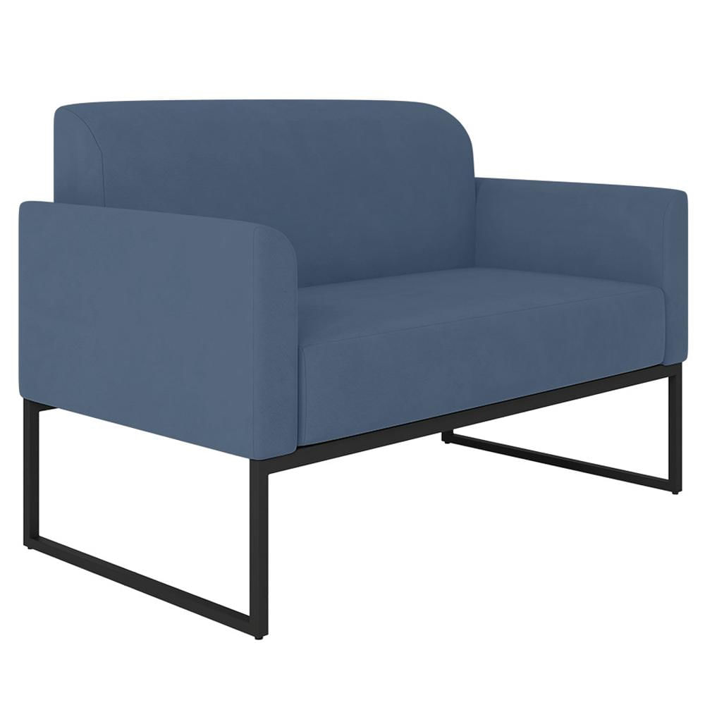 Poltrona Namoradeira Decorativa Isabella Base Industrial Suede Azul Marinho/Preto - Gran Belo