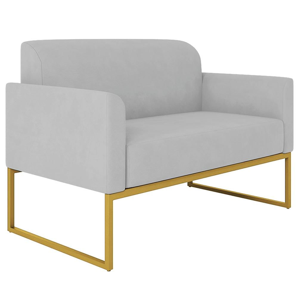 Poltrona Namoradeira Decorativa Isabella Base Industrial Suede Cinza/Dourado - Gran Belo