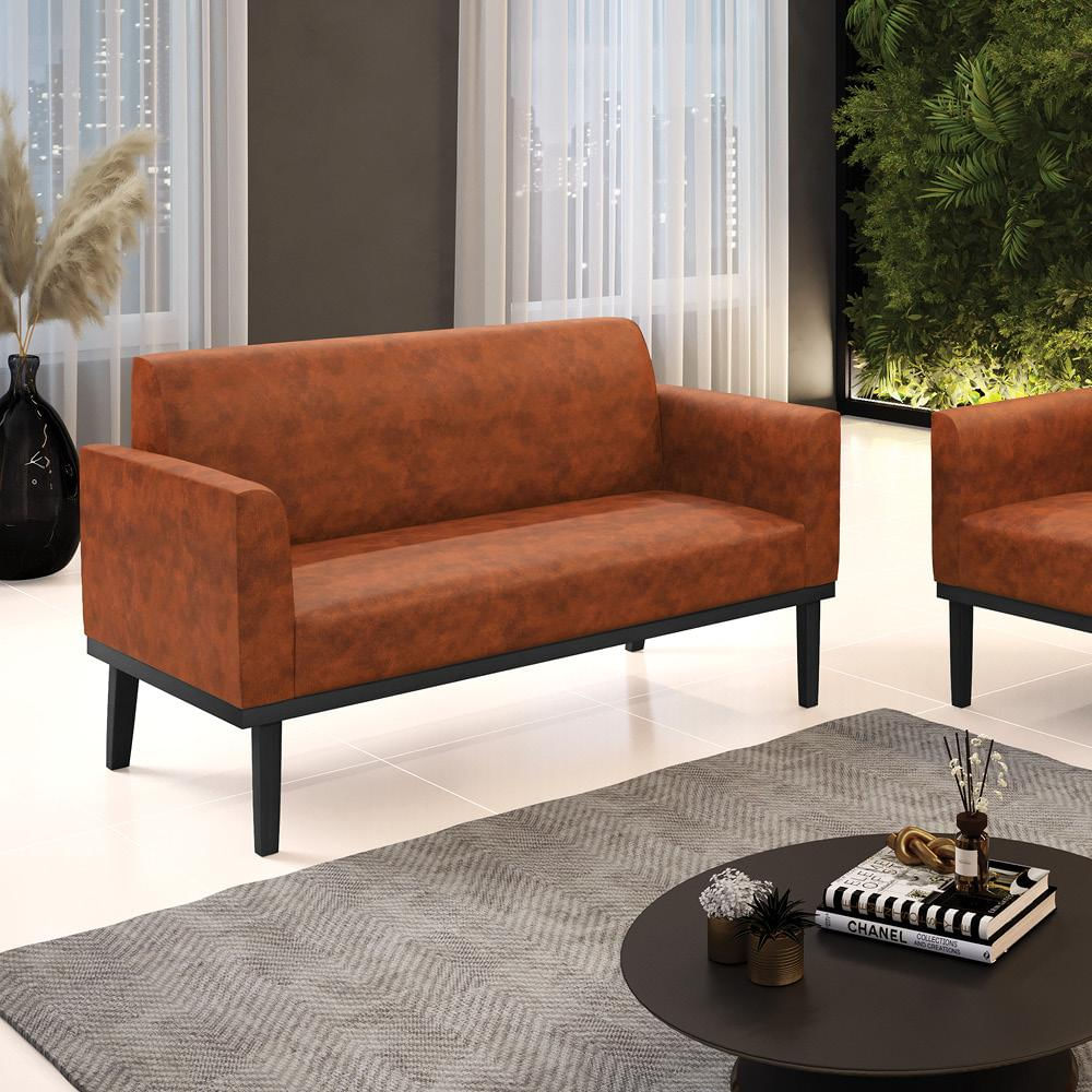 Poltrona Namoradeira Decorativa Isabella Pés Fixo em Madeira Preto PU Nozes G19 - Gran Belo