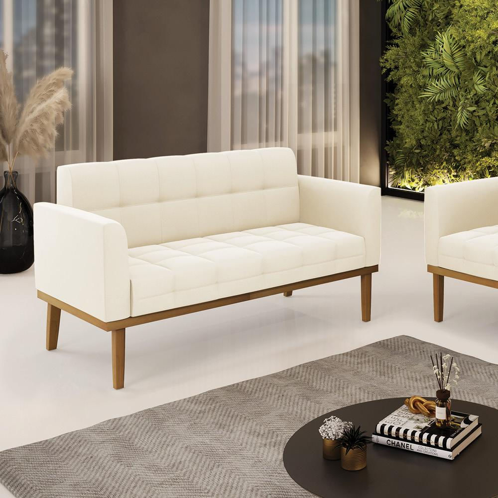 Poltrona Namoradeira Decorativa Karen Pés Fixo em Madeira Castanho Veludo Bege G19 - Gran Belo
