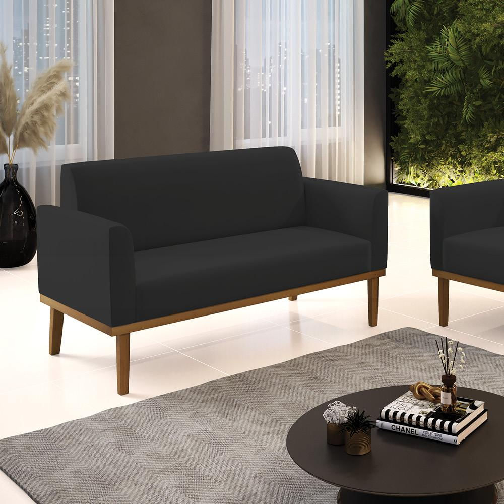 Poltrona Namoradeira Decorativa Karen Pés Fixo em Madeira Castanho Veludo Preto G19 - Gran Belo