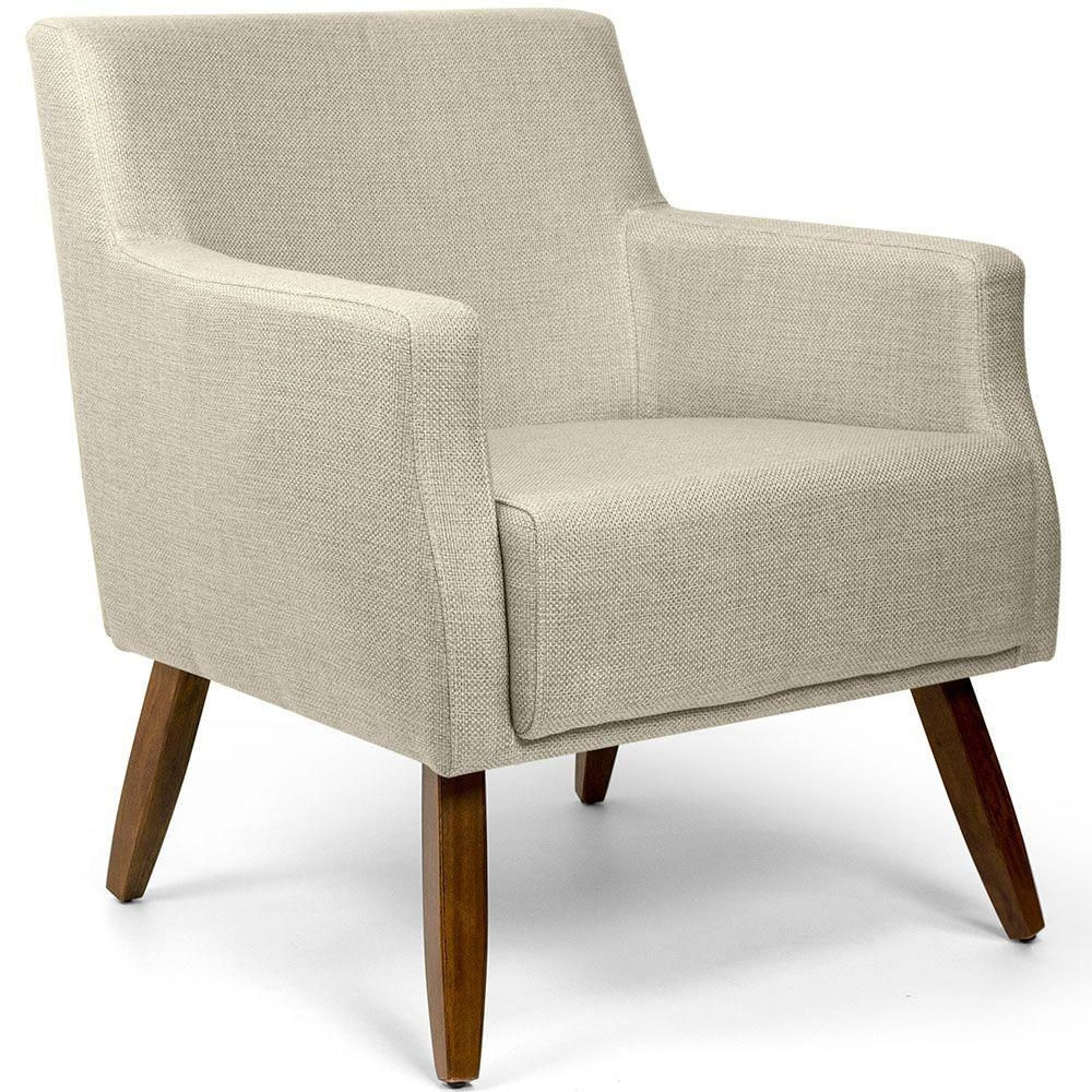 Poltrona Para Sala De Estar Diva Pés Manu Linho Rústico Bege - Nexta Casa