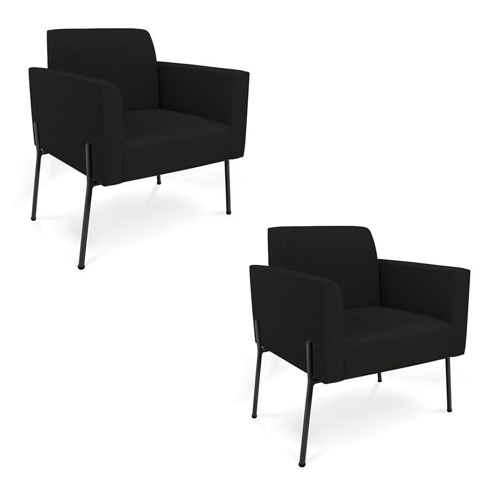 Poltrona Pé De Ferro Preto Kit 2 Decorativa Marisa Linho Preto D03 - D'rossi