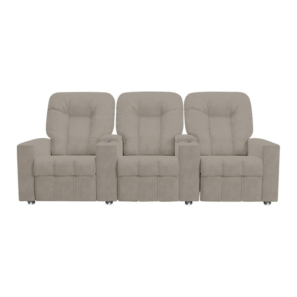Desenvolvida para superar as suas expectativas, a Poltrona Reclinável 3 Lugares, veio para trazer a experiência cinematográfica sem você sair do conforto de seu lar. Esta poltrona é uma excelente escolha para qualquer ambiente, seja ele sua sala de estar, quarto ou até mesmo sala de cinema, além disso, a poltrona é feita com materiais de alta qualidade, garantindo durabilidade e resistência para longas horas de uso. Uma peça única, confortável e pronta para você. Não perca tempo, adquira já a sua. Dimensões do Produto (L x A x P) 240 cm x 110 cm x 98 cm Profundidade Aberto: 148 cm Altura do Encosto: 70 cm Altura do Assento: 45 cm Largura do Assento: 52 cm Profundidade do assento: 50 cm Características: Estrutura em madeira de reflorestamento de eucalipto e MDF. Encosto reclinável com fibra siliconada. Assento reclinável com espuma D-26. Braça com espuma D-20. Possui mecanismo de 02 estágios e 03 posições. Contém porta copo nas braças e revisteiro na lateral. Pés em madeira revestidos em alumínio. Revestimento em Veludo na cor Capuccino. Suporta 110 Kg por assento. - A tonalidade do produto real poderá ter ligeira variação devido o lote de tecidos. - A limpeza deve ser feita com pano levemente umedecido em água limpa, sem esfregar, não utilizar produtos abrasivos, desengordurantes, álcool ou solvente.. Observações importantes: - Produto para uso em ambiente interno, não devendo ficar exposto diretamente ao sol, calor e umidade excessivos. - Pode haver alguma diferença de tonalidade entre a imagem e o produto real, por conta do tratamento de imagens e a calibração de cores do seu monitor. - As imagens são meramente ilustrativas, não acompanham objetos de decoração e eletrônicos. - Ao receber a mercadoria, o cliente deve verificar as condições da embalagem, caso haja alguma avaria não assine o comprovante de recebimento. - Montagem, desmontagem e outras instalações serão de responsabilidade do cliente. Não nos responsabilizamos, no ato da entrega, por subir escadas/elevadores ou pelo transporte por guincho em apartamentos. Eventuais despesas são de responsabilidade do comprador. - Confira as dimensões do produto e certifique-se de que passará normalmente por supostos elevadores, portas, escadas e/ou corredores de sua residência.