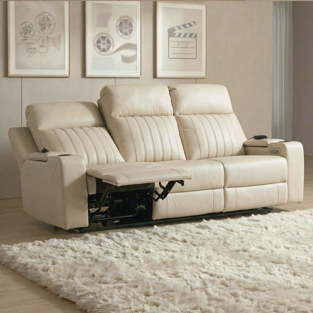 Poltrona Reclinável Cinema 3 Lugares Baú USB PU Moscou Sintético Bege Z57 - Mpozenato Tecnologia e conforto se unem em um modelo pensado para proporcionar uma experiência completa de relaxamento. A Poltrona Reclinável Elétrica conta com acionamento motorizado que permite ajustar a posição com praticidade, garantindo mais comodidade no uso diário da Sala de Estar.