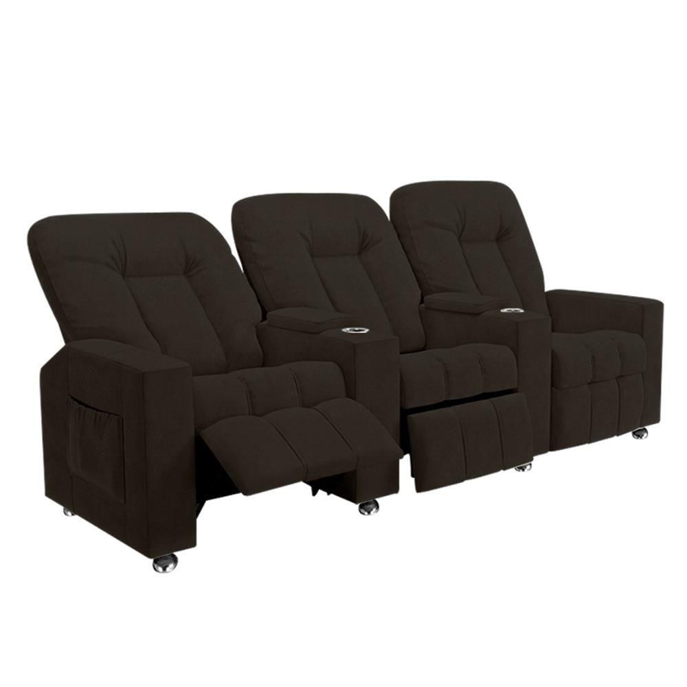 Poltrona Reclinável Para Cinema 3 Lugares Praddo Fh9 Veludo Marrom - Mpozenato