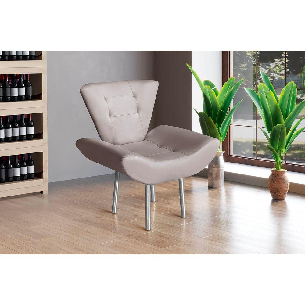 Poltrona Rubi Giratória Veludo Cinza De Casa Decor Estofados