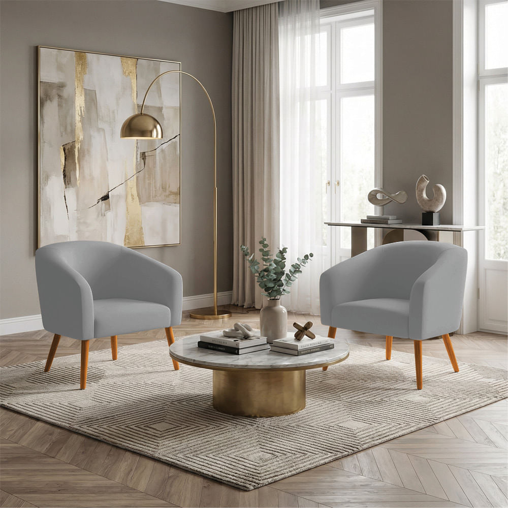 Poltrona Sala Dcorativa Kit 2 Stella Pé Palito Castanho Sintético Cinza D03 - D'Rossi