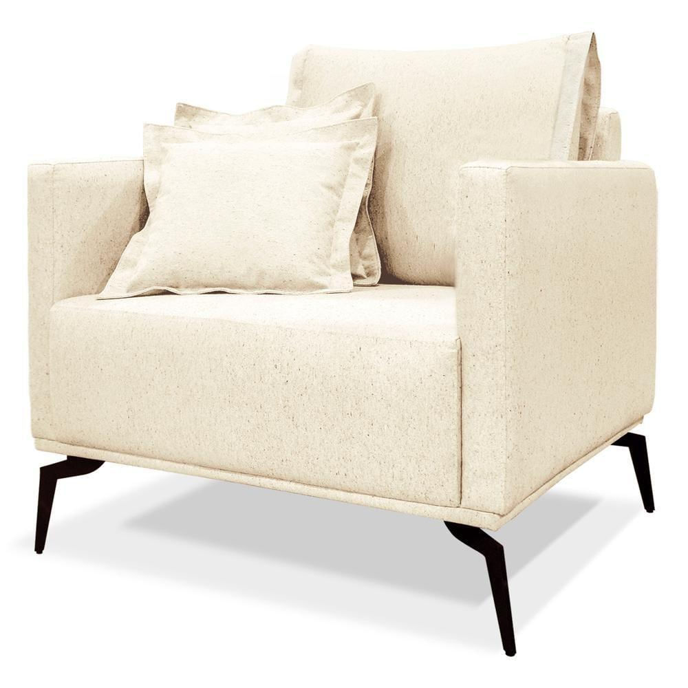 Poltrona Sala De Estar Liv 1 Lugar Pes Aço Linho Perola Ezz Perola