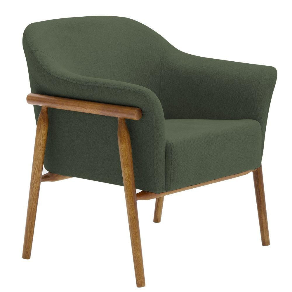 Poltrona Sala De Estar Luna Base Madeira Castanho Poliéster Verde Musgo - Nexta Casa