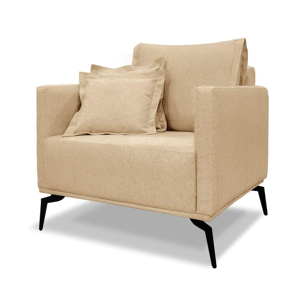 Poltrona Sala De Estar Pé De Ferro Preto Rafaela Linho Dourado S04 - D'rossi