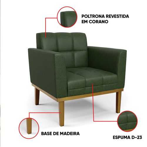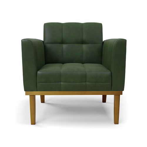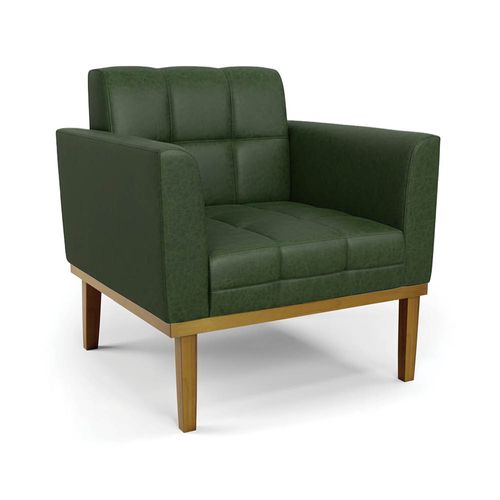 Poltrona Sala Decorativa Elisa Base Madeira Fixa Castanho Sintético PU Verde D03 - D'Rossi