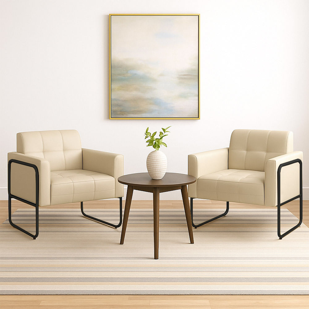 Poltrona Sala Decorativa Kit 2 Elisa Base Tubular Alta Preta Sintético PU Bege D03 - D'Rossi