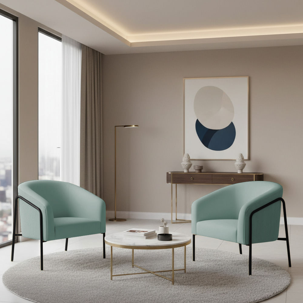 Poltrona Sala Decorativa Kit 2 Stella Base Alta Tubo Preto Veludo Cotelê D03 - D'Rossi Menta
