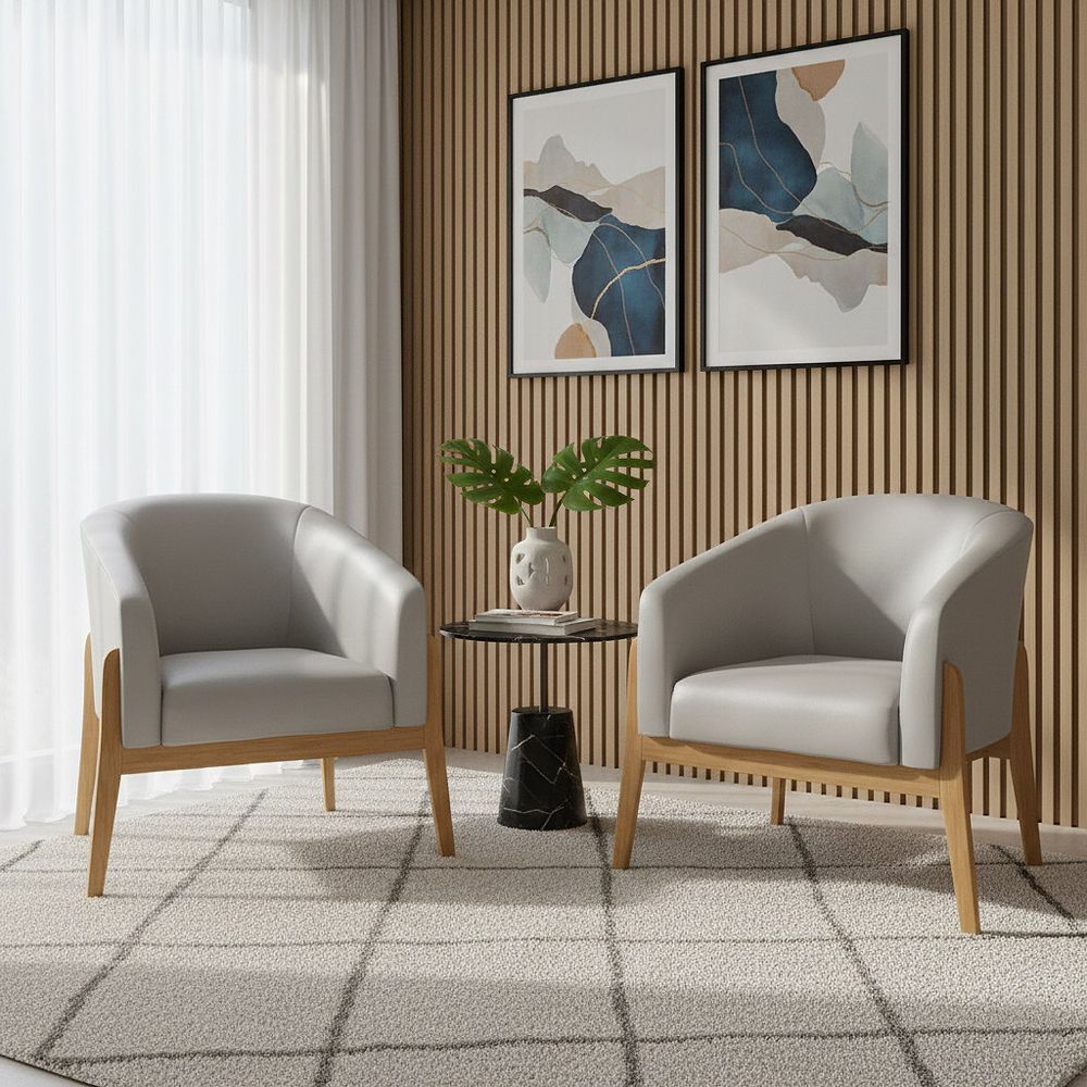 Poltrona Sala Decorativa Kit 2 Stella Base de Madeira Sintético Cinza D03 - D'Rossi