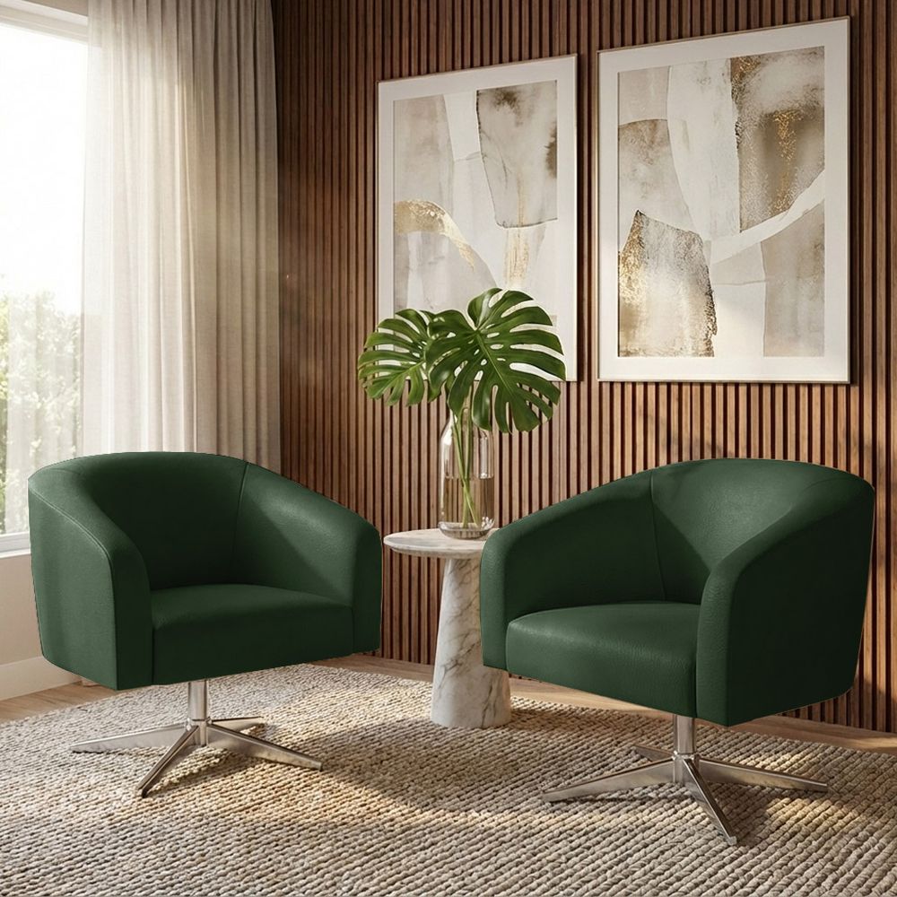 Poltrona Sala Decorativa Kit 2 Stella Giratória Cromada Sintético PU Verde D03 - D'Rossi