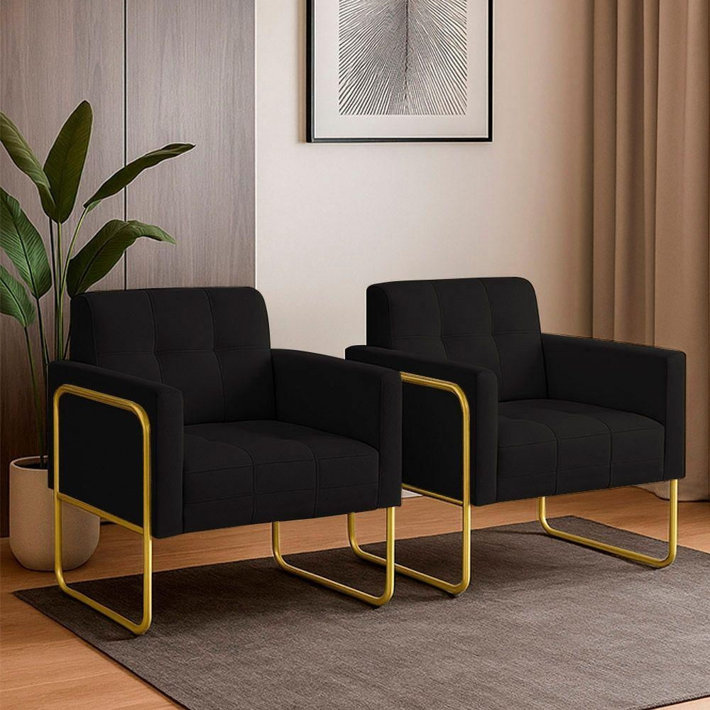 Poltrona Sala Industrial Alta Tubo Dourado Kit 2 Elisa Linho D03 - D'rossi Preto