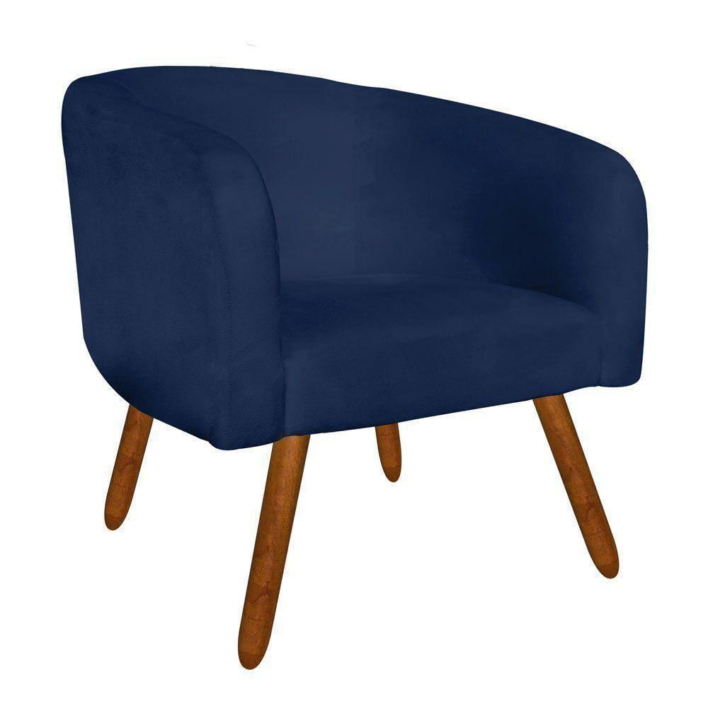 Poltrona Stella Suede Azul Marinho Pés Palito Castanho Drossi