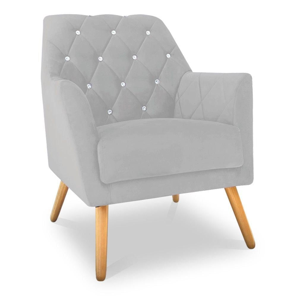 Poltrona Velvet Strass Veludo Pés De Madeira - Pallazio Cor Cinza