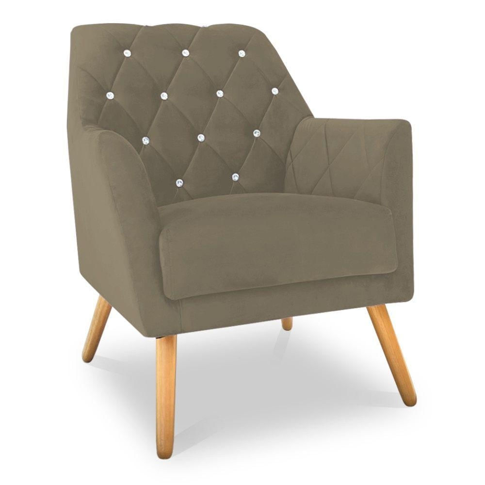Poltrona Velvet Strass Veludo Pés De Madeira Cappuccino - Pallazio