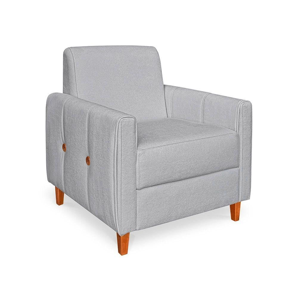 Poltrona Zoe Bouclê Cinza Pés De Madeira - Pallazio