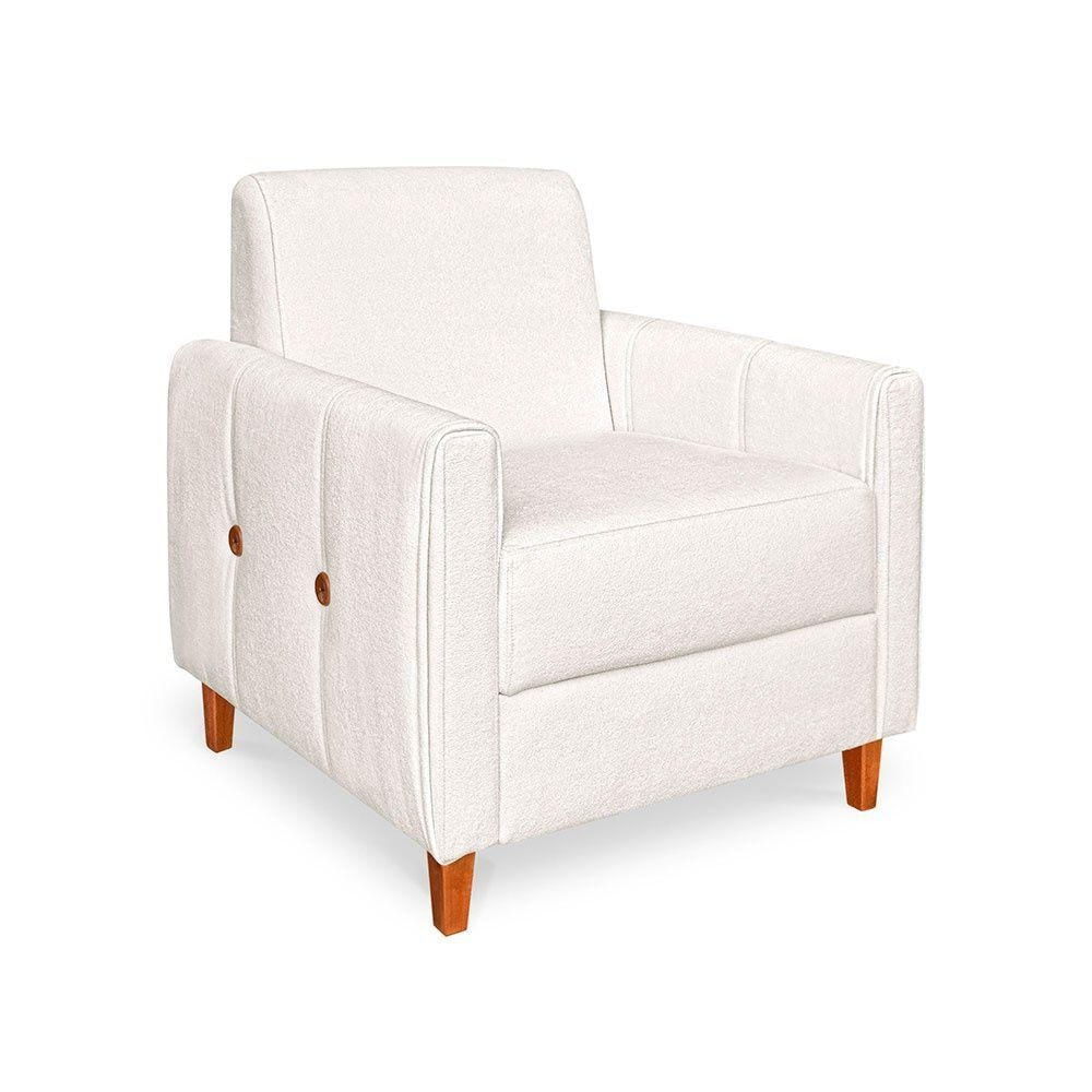 Poltrona Zoe Bouclê Off White Pés De Madeira - Pallazio