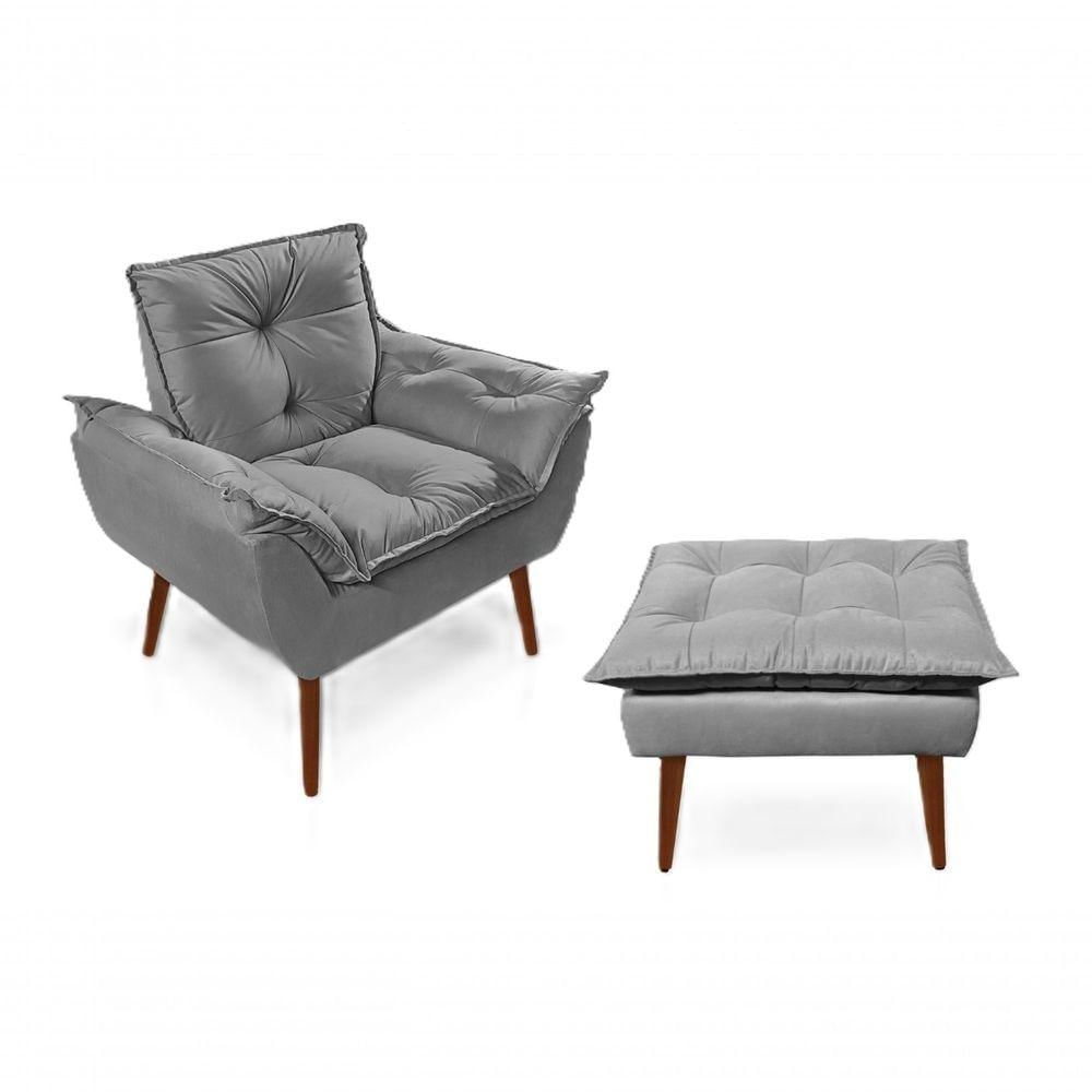 Poltronas para Amamentação com 1 Puff Decorativas Confortáveis para Sala, Quarto, Recepção - Suede Luxo Cinza Claro