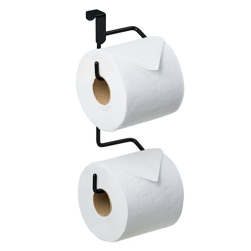 Porta Papel Higiênico para Caixa de Descarga Suporte para Dois Rolos Sem Furo Preto