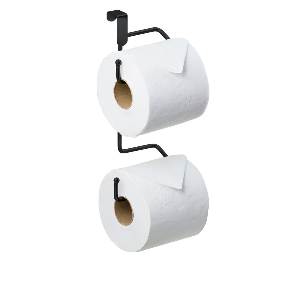 Porta Papel Higiênico para Caixa de Descarga Suporte para Dois Rolos Sem Furo Preto