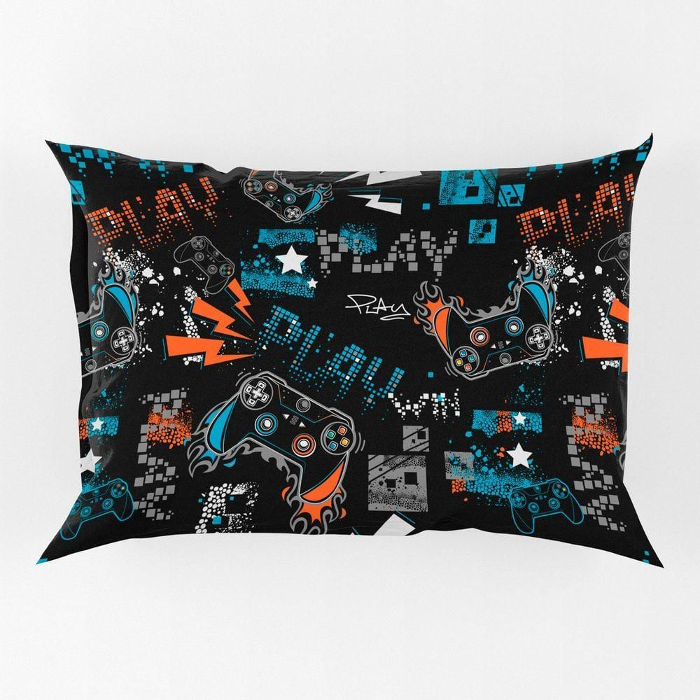 Porta Travesseiro Fronha Avulsa Estampada Game Win 70cm X 50cm - Digital Juvenil Infantil Decorativo Gamer Geek Nerd
